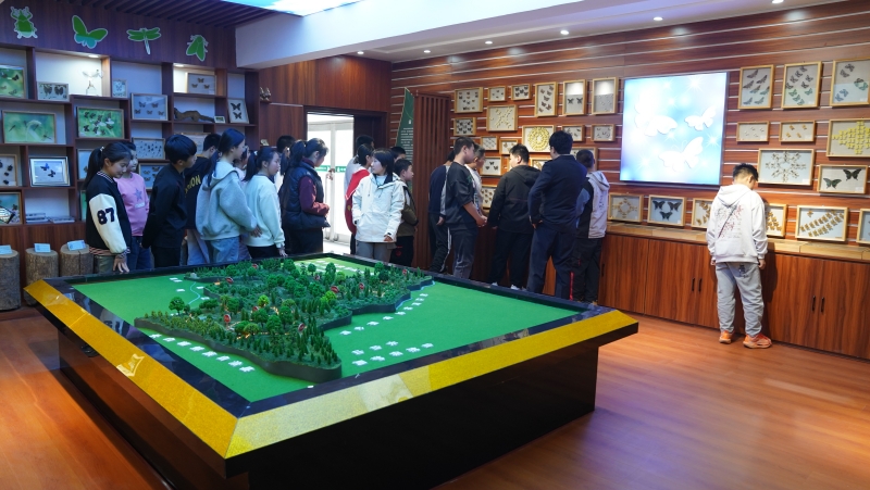 随后,在工作人员的带领下,学生们有序走进长白山生物标本室。标本室内,各类长白山地区珍稀动植物标本整齐陈列,工作人员围绕森林病虫害相关标本,细致讲解了不同生物的生态习性、物种特征以及生物间的相互关系,让学生们近距离观察、直观感受森林生态系统的多样性与脆弱性。通过实地参观、近距离观摩,学生们对森林生态保护、林业有害生物防控有了更具象、更深刻的认知,学习热情高涨,纷纷表示收获满满。