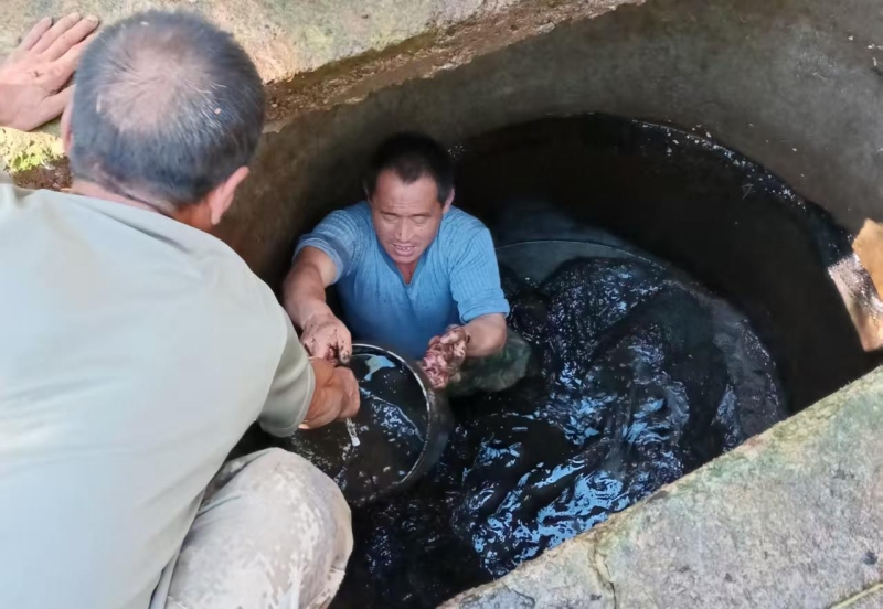 在清淤现场,党员干部带头冲锋,精准定位池底淤泥厚重的清理难点,志愿者细心清扫池壁附着的污垢,职工们主动承担淤泥清运工作。大家密切配合,有的穿着高筒雨靴下到池内,用铁锹一铲一铲清理淤泥,有的负责通过水桶将淤泥转运至池外,有的负责装车运走清出的淤泥。